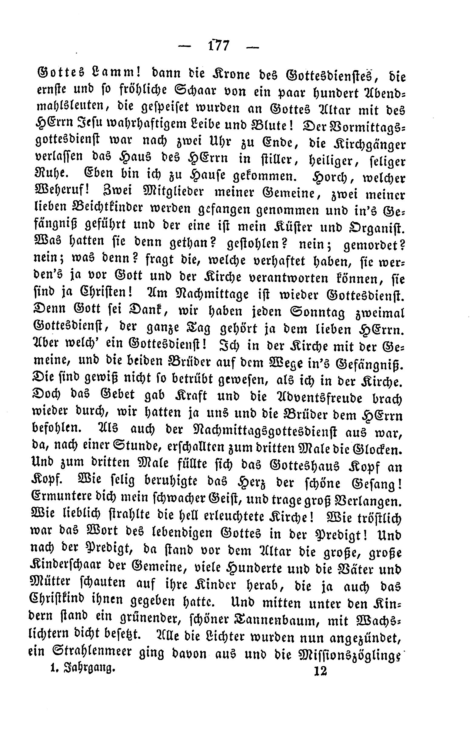 God’s lamb! Then the crown of the Lord’s service, the serious and joyful celebration of a few hundred evening attendees, who were cursed with the Lord’s Altar with the German master’s true faith and blood. The morning service was finished after two hours, the congregation left the house of the Lord in quiet, holy, and secluded peace. And I came. Hear, which herald! Two members of my brethren, two of my dear confessors are captured and led into the prison, and one is my steward and organist. What did they do? They did not steal? No; they cursed? No; what did they do? Ask those who captured them, they can be held accountable for it, they find the truth, who came before God and the Church, they find that the Christians are! At the afternoon, again, the Lord’s service. Because God be praised, we have the Lord’s service twice every Sunday, the whole day is heard by the beloved Lord. But what a service in the church with the brothers on the way to prison. They certainly did not seem so distressed as I was in the church, but the prayer gave strength and the Advent joy broke forth again, we had with them and the brothers be given to the Lord. When the afternoon service was finished, after an hour, the bells rang three times. And after three times, the house of God filled with a full head. And after three times, the church was filled with a great, great crowd of children. The beautiful tree of tinsel was filled with wax. All the lights were now lit, a ray of light went out and the missionary students. Year of 12