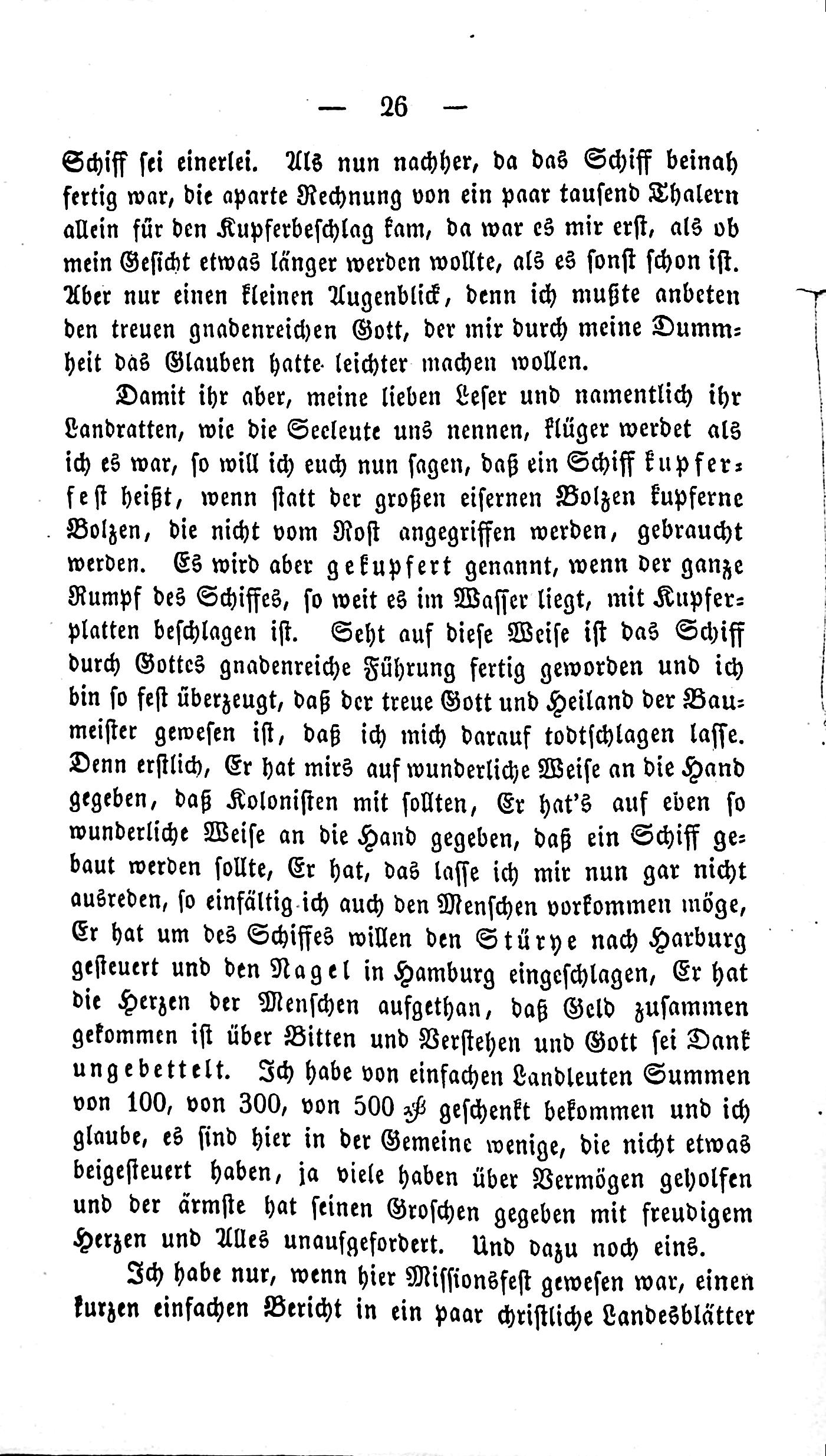 “The ship is alone.” “One must be alone.” “As now, after she was nearly finished, the account of a few thousand thalers alone for the copper-plating came, that was it – when I first felt my face wanting to grow longer than it had been before. But only a little moment because I must pray to the faithful merciful God who should make it easier for me to believe. Thus, my friends and particularly my nation, landrattem, like the sailors, we name ourselves so, will I now say that a ship of copper firm is called when instead of the great iron-bolzens come – – – which do not be-attacked by the rust. But when the whole hull of the ship so far as it lies in water is covered with copper-plat plates, see how it is covered – – – with copper – – – with the metal so as to make it look like a ship – – – is forever – – – – in the water, the God’s generous guiding led to the faithful noble grace – – – that allow me to make belief – – – that the faithful god and helied the builder.”