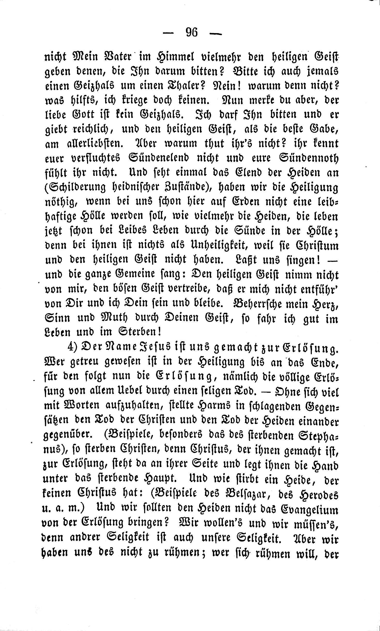 —96— Not my father in heaven, rather the holy spirit. I beg him, the one who asks Jonah? I’ve never invested in a Geizhals for a Thaler, right? No! Why not? What helps me, I get no. Now, mark you, the dear God is not a Geizhals. I may ask Jonah and he gives generously, and the holy spirit, as the most lovely gift, most of all. But why don’t you? You know your own sins and your sins’ needs, don’t you feel that?
